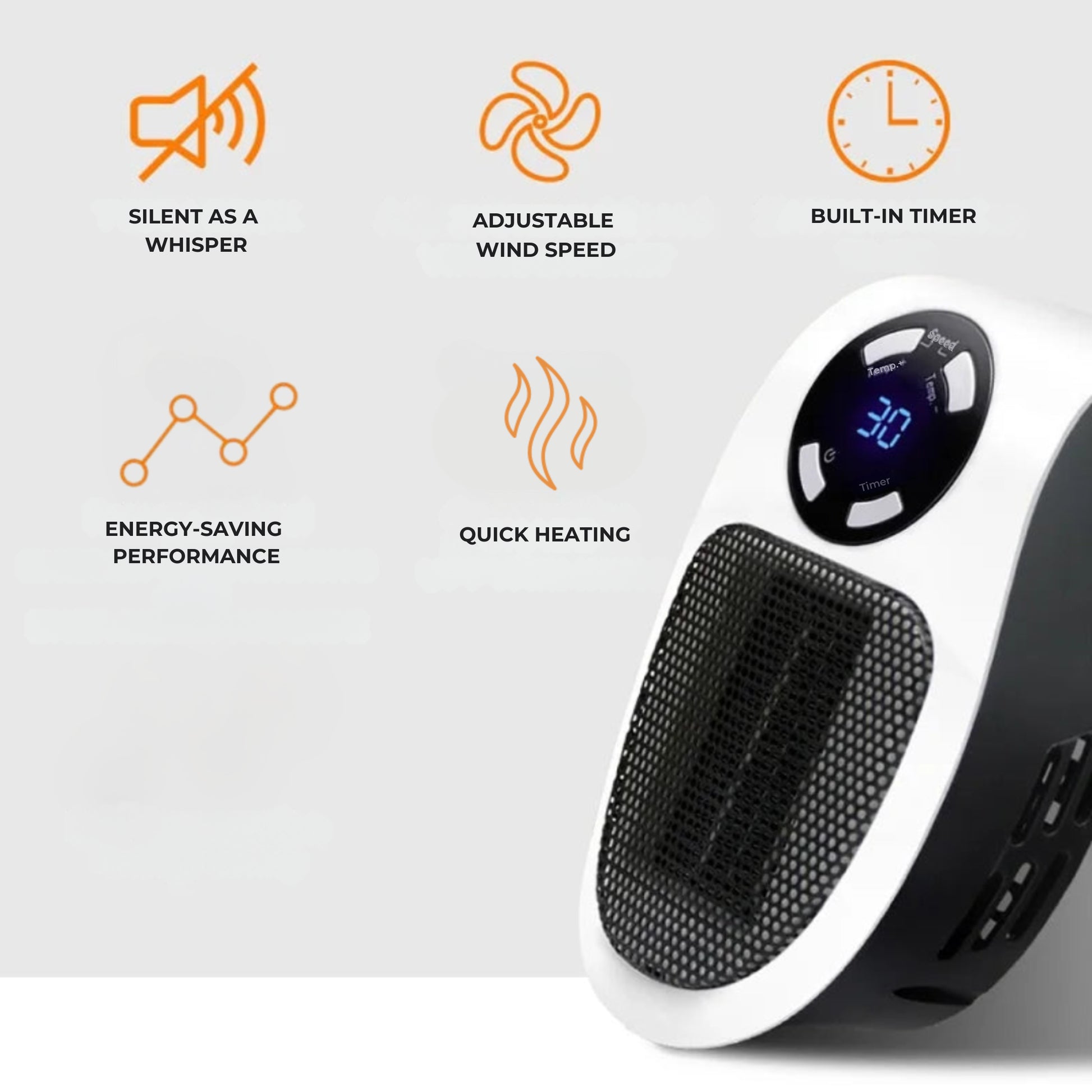 EcoHeat uses advanced ceramic heating that warms up 30% faster and retains heat longer, using less power than traditional space heaters.